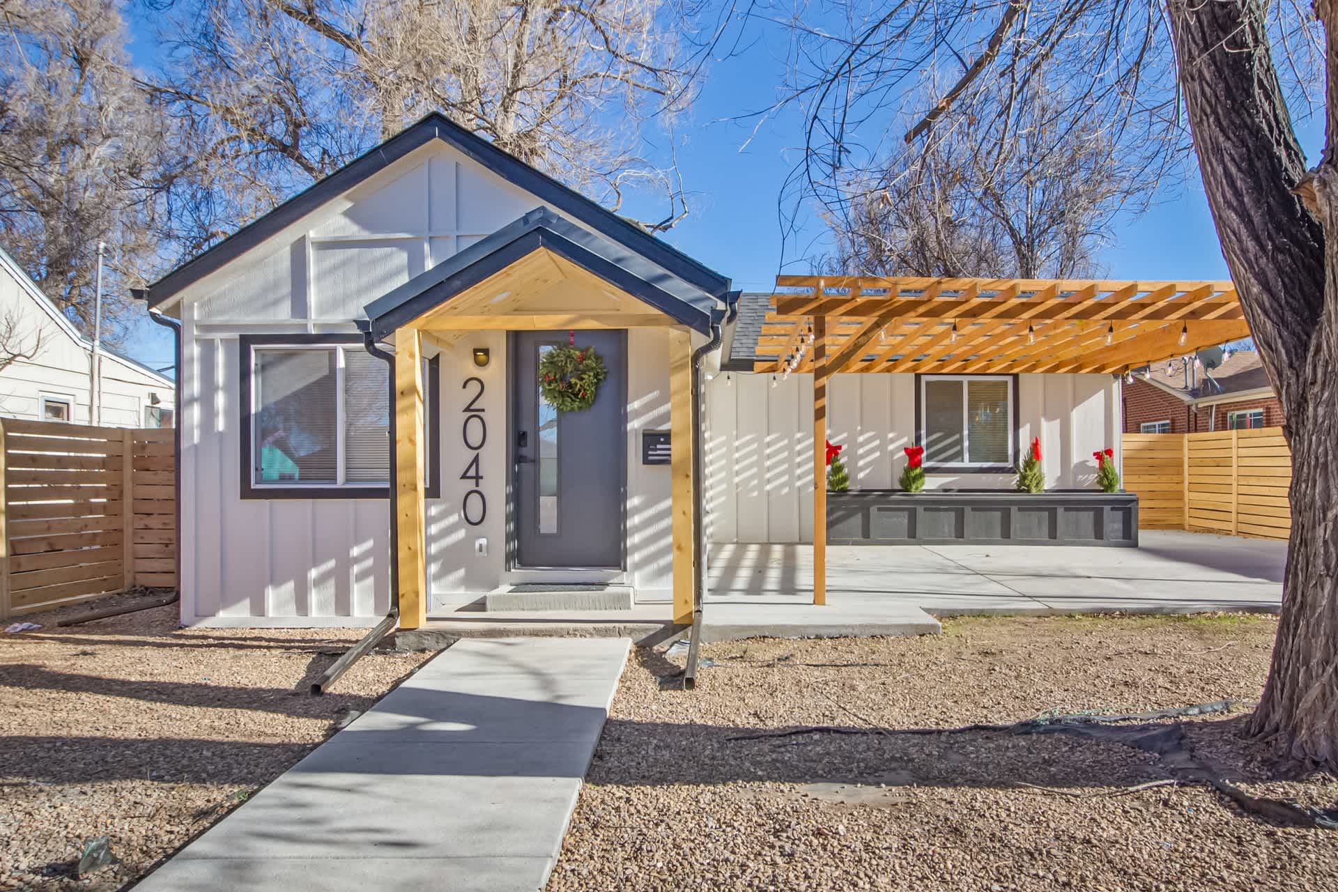 Fully remodeled and beautifully finished Aurora home within walking distance to Stanley Marketplace. Brand new everything, roof, on demand water heater, furnace, AC, LVP flooring, SS appliances, kitchen counter tops and kitchen cabinets. New tiling in bathrooms, new carpet in bedrooms, kitchen appliances, pantry off the kitchen, laundry room for great efficient living. Large lot with a 1 car garage in the rear with alley access and also parking on the front concrete area. 3 bedrooms and 2 bathrooms with an ensuite off the primary bedroom, barn doors add a great feature to the home. Kitchen island allows for a open plan kitchen and living room. Large fully fenced back yard allows for entertaining space and/or plenty of space for pets to roam and be safe.