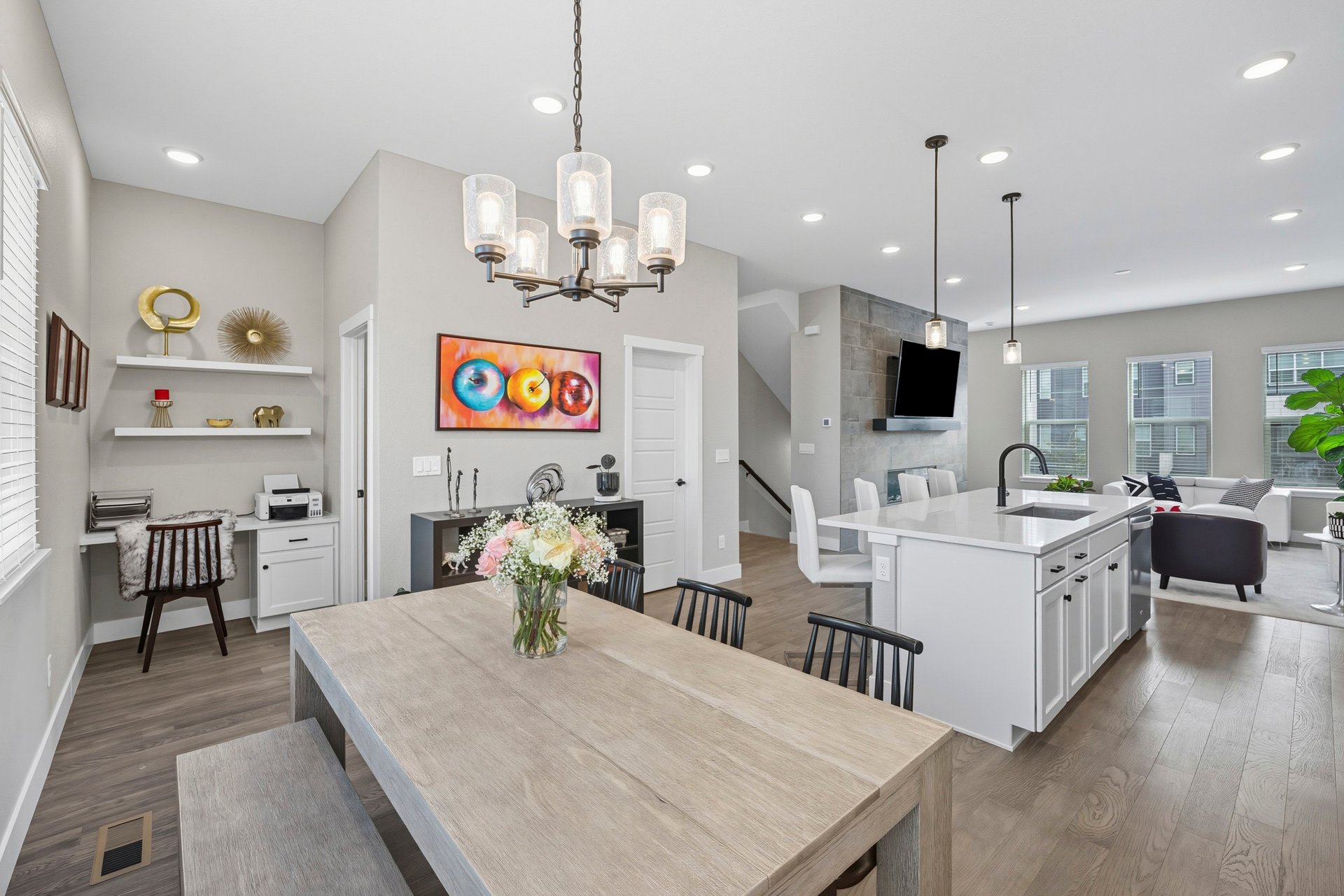 Seamless flow between the living, dining, and kitchen areas